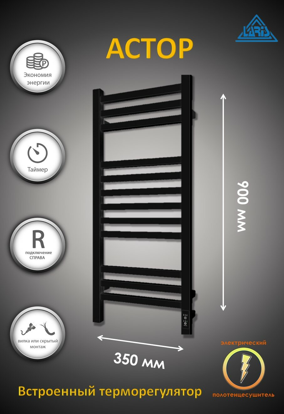 Полотенцесушитель электрический Астор ЧКЧ П12 350х900 Черный матовый правое подключение