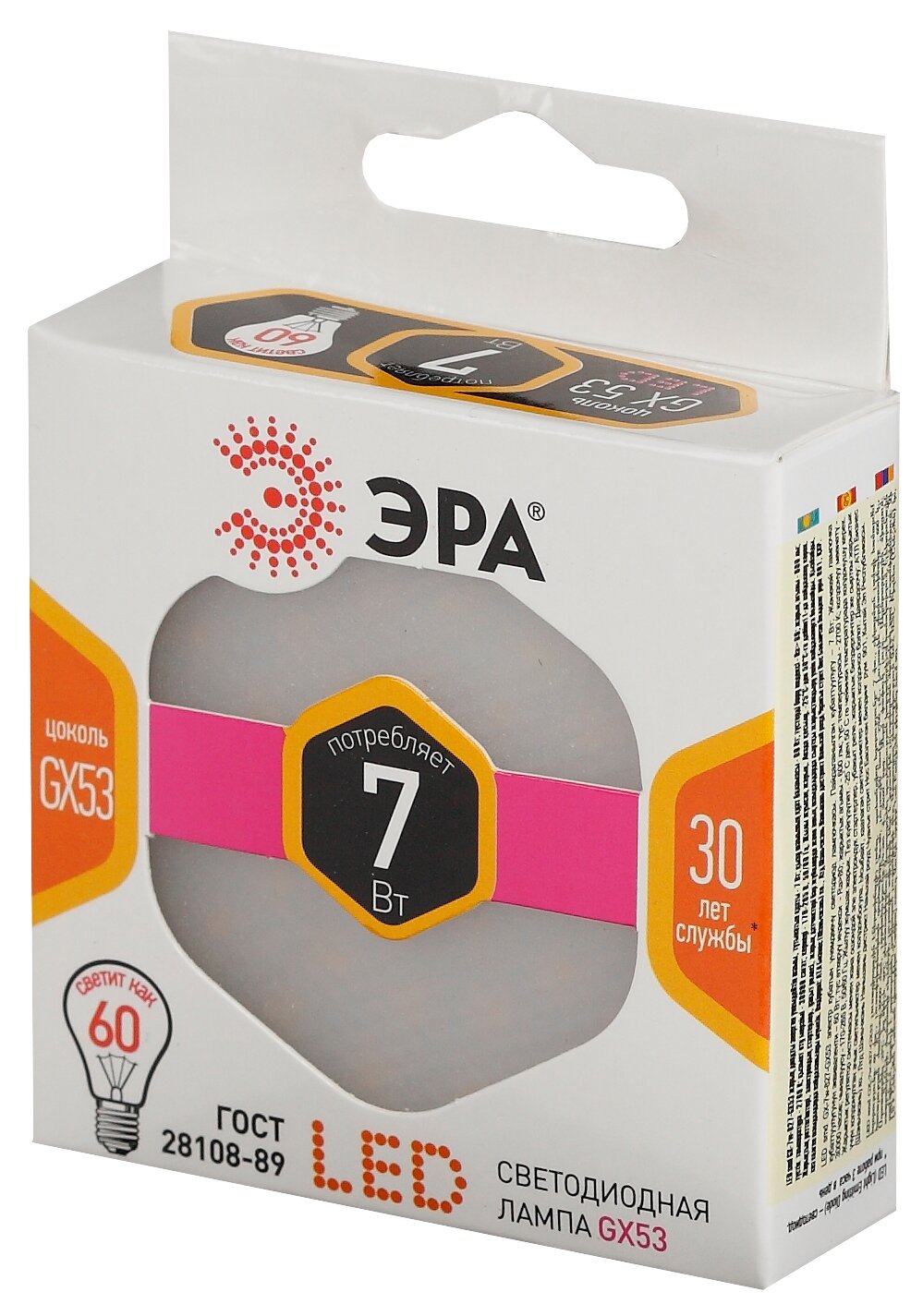 (16 шт.) Светодиодная лампочка ЭРА 7Вт 2700К 170-265В GX53