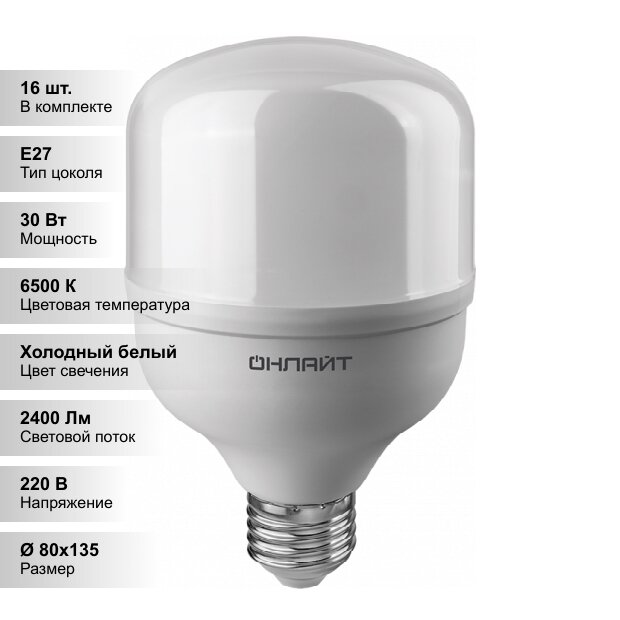 Купить (16 шт.) Светодиодная лампочка онлайт 30Вт 230В 6500К E27