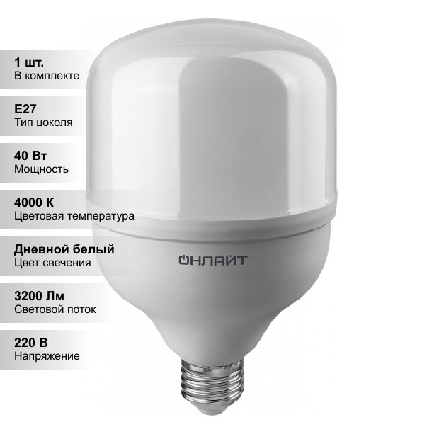 Купить (1 шт.) Светодиодная лампочка онлайт 40Вт 230В 4000К E27/E40