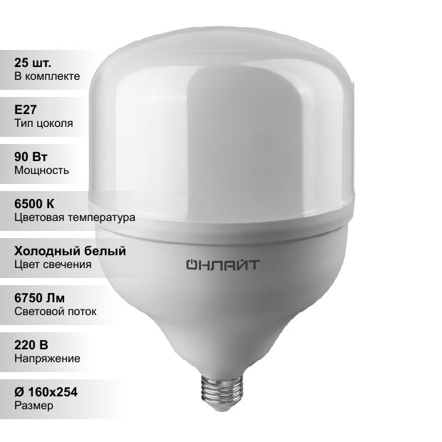 Купить (25 шт.) Светодиодная лампочка онлайт 90Вт 230В 6500К E27/E40