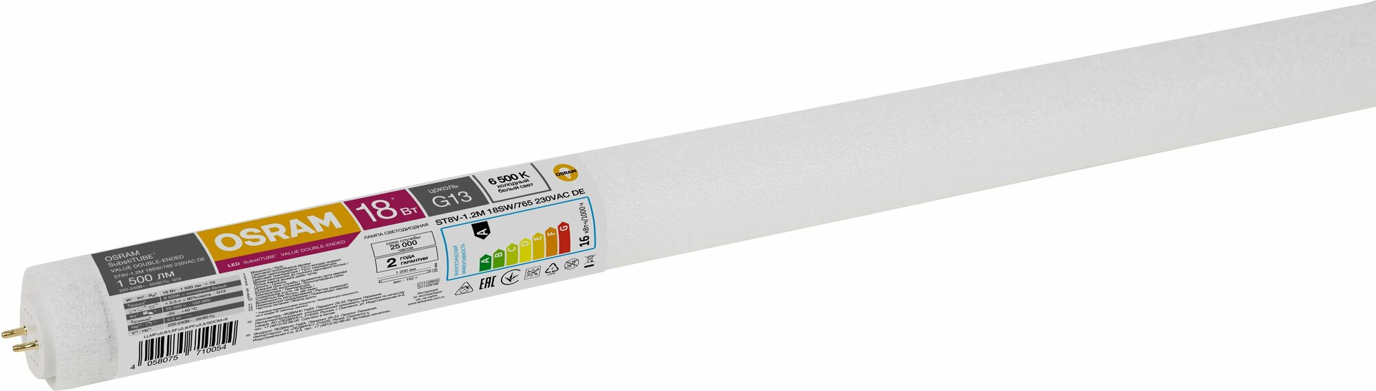 Светодиодная лампа Ledvance-osram OSRAM ST8V -1.2M 18W/765 230VAC DE 25X1 RU 1500Lm 6500K Ra70 (2 ст прям. подкл)
