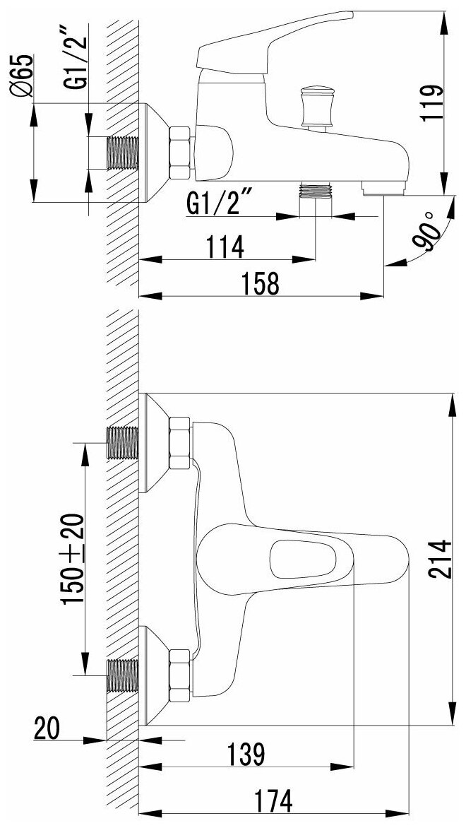 | Управление смесителем | рычажное |