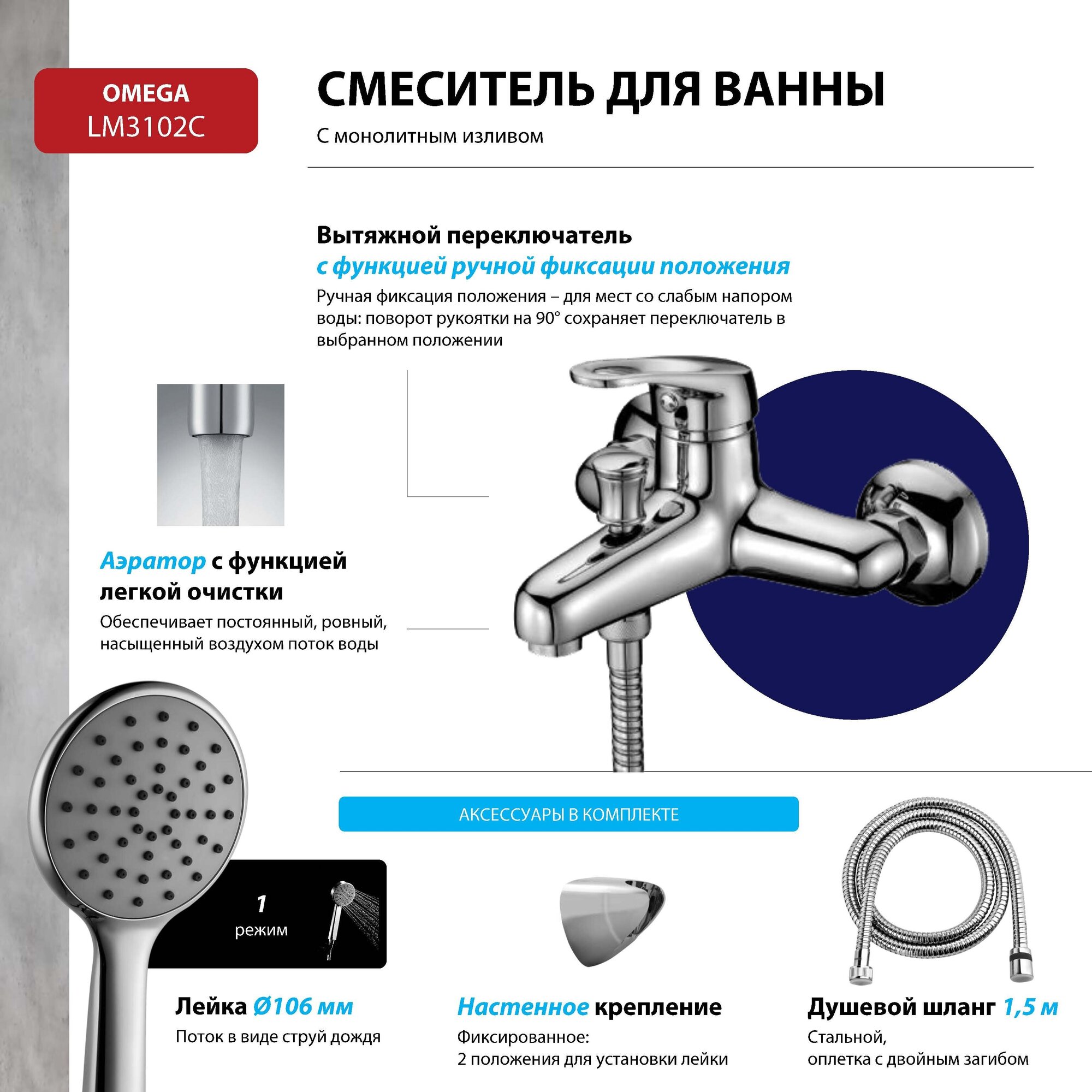 Смеситель Lemark Omega LM3102C для ванны и душа