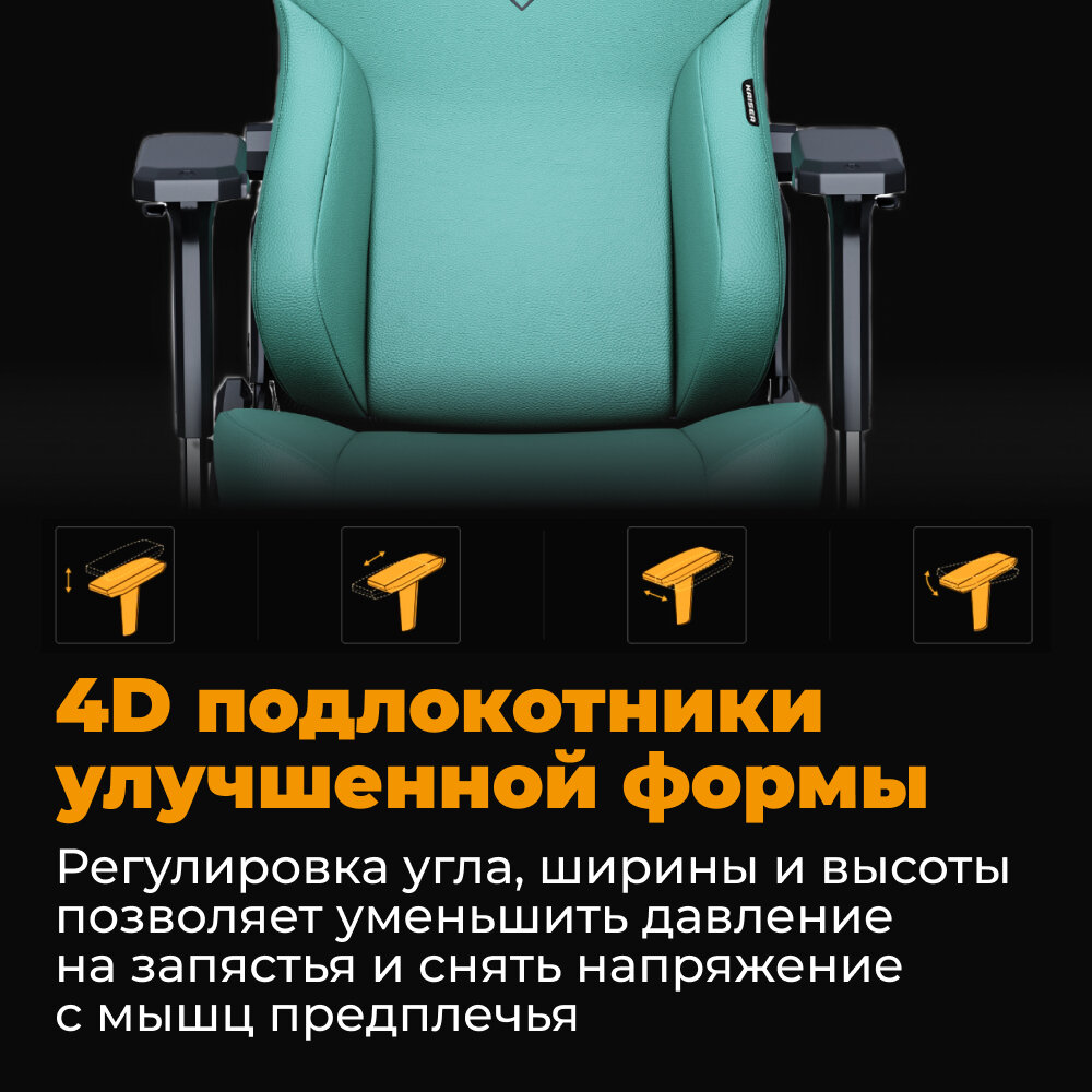 | Регулировка | высоты подголовника / высоты подлокотников / высоты поясничного упора / высоты сиденья / глубины положения подлокотников / жесткости качания / наклона спинки / расстояния между правым и левым подлокотником / угла подлокотников |