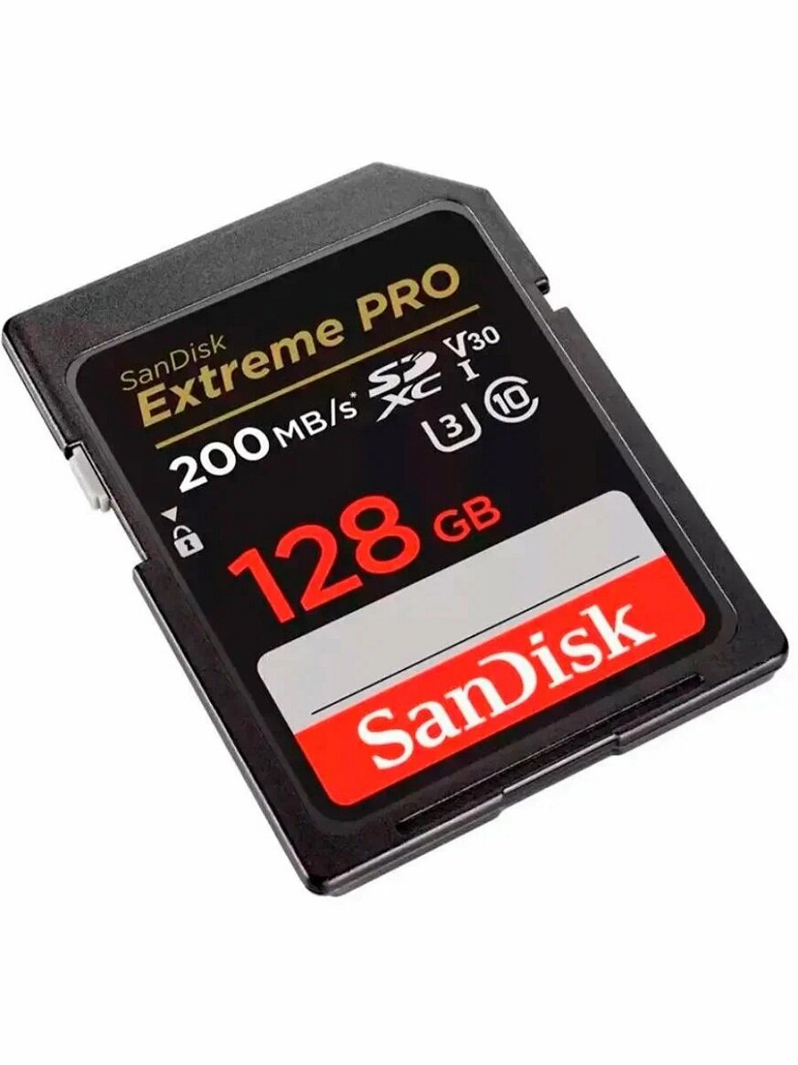 Карта памяти SanDisk Extreme PRO SDXC 128 ГБ Class 10 UHS-I U3 V30 (R/W 200/90 Mb/s)
