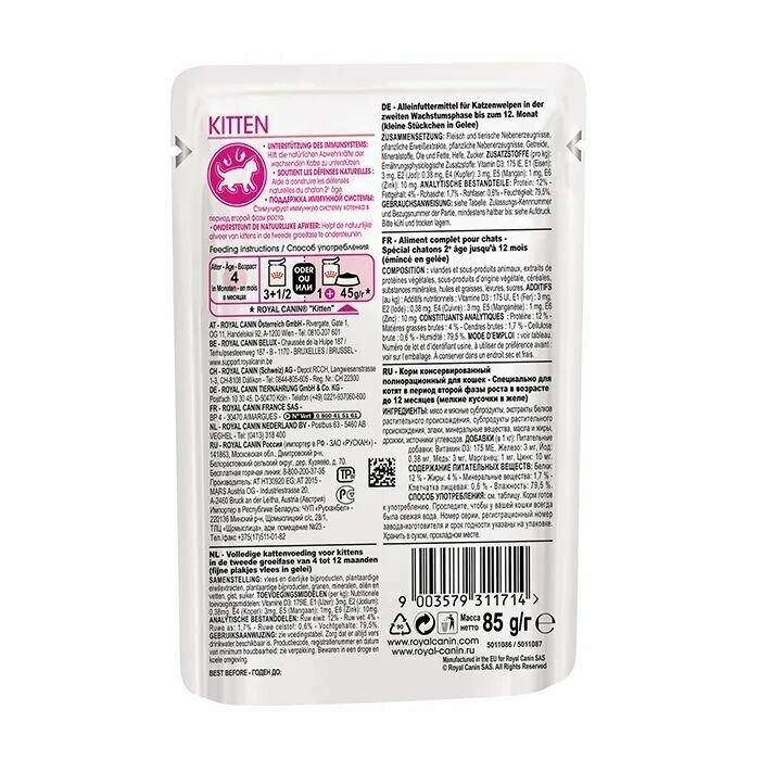 ROYAL CANIN KITTEN желе влажный корм для котят в возрасте до 12 месяцев 85г х 10 шт