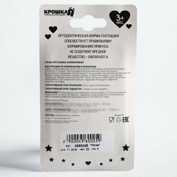 Соска - пустышка силиконовая ортодонтическая Панда , от 3 мес интересное:
