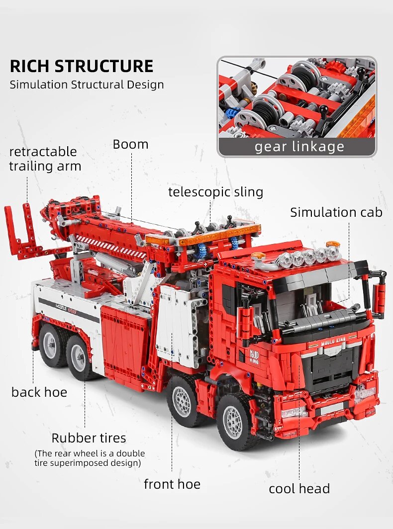 Конструктор Mould King 17011 Сверхмощный буксировочный грузовик, Сборная модель механическая, Пластиковый, Для мальчика, 1250 Деталей