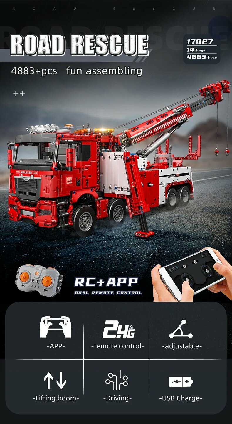 Конструктор Mould King 17028 Дорожно-спасательная машина с ДУ и моторизацией красная, 4883 деталей, техник, подарок для мальчика