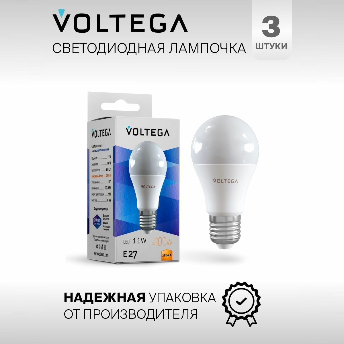 Купить Лампочка светодиодная E27 форма груши 11W нейтральный свет Voltega Simple А60 4000K упаковка 3 штуки