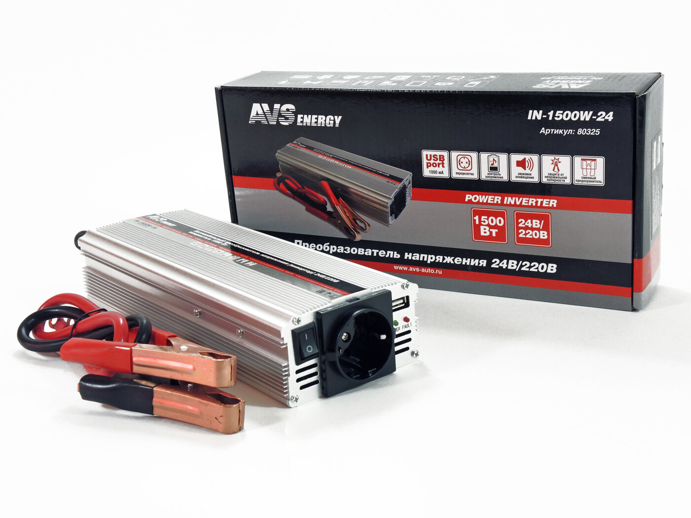 Автомобильный инвертор 24/220V AVS IN-1500W-24 80325 интересное: