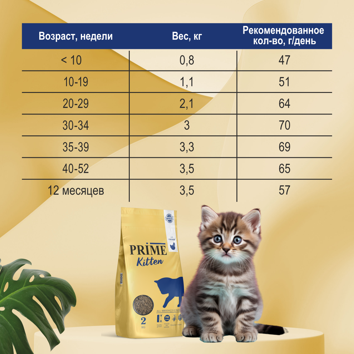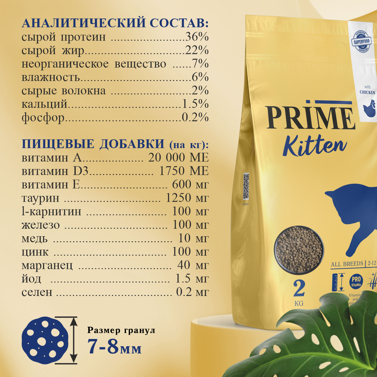 PRIME KITTEN -сухой корм для котят от 2 до 12 месяцев, с курицей -2 кг