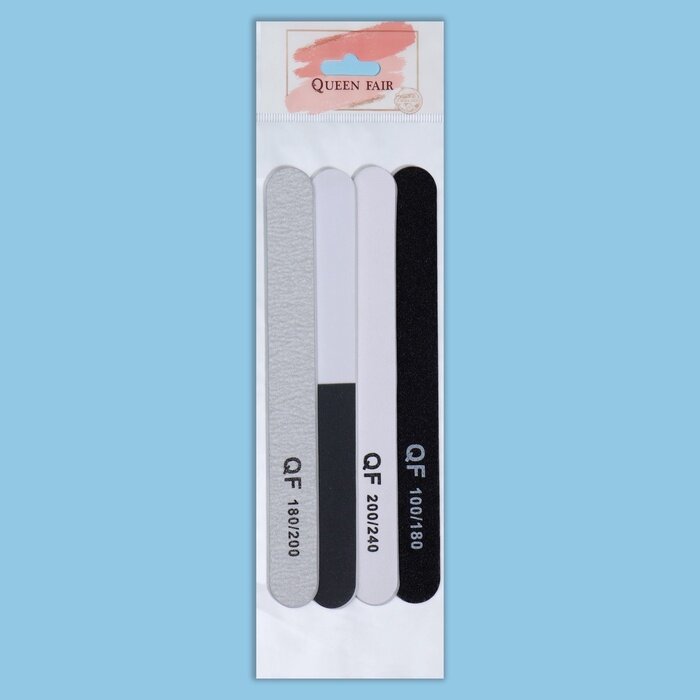 Купить Набор пилок для ногтей, прямые, 100/180, 180/200, 200/240 грит, 18 см, 4 шт.