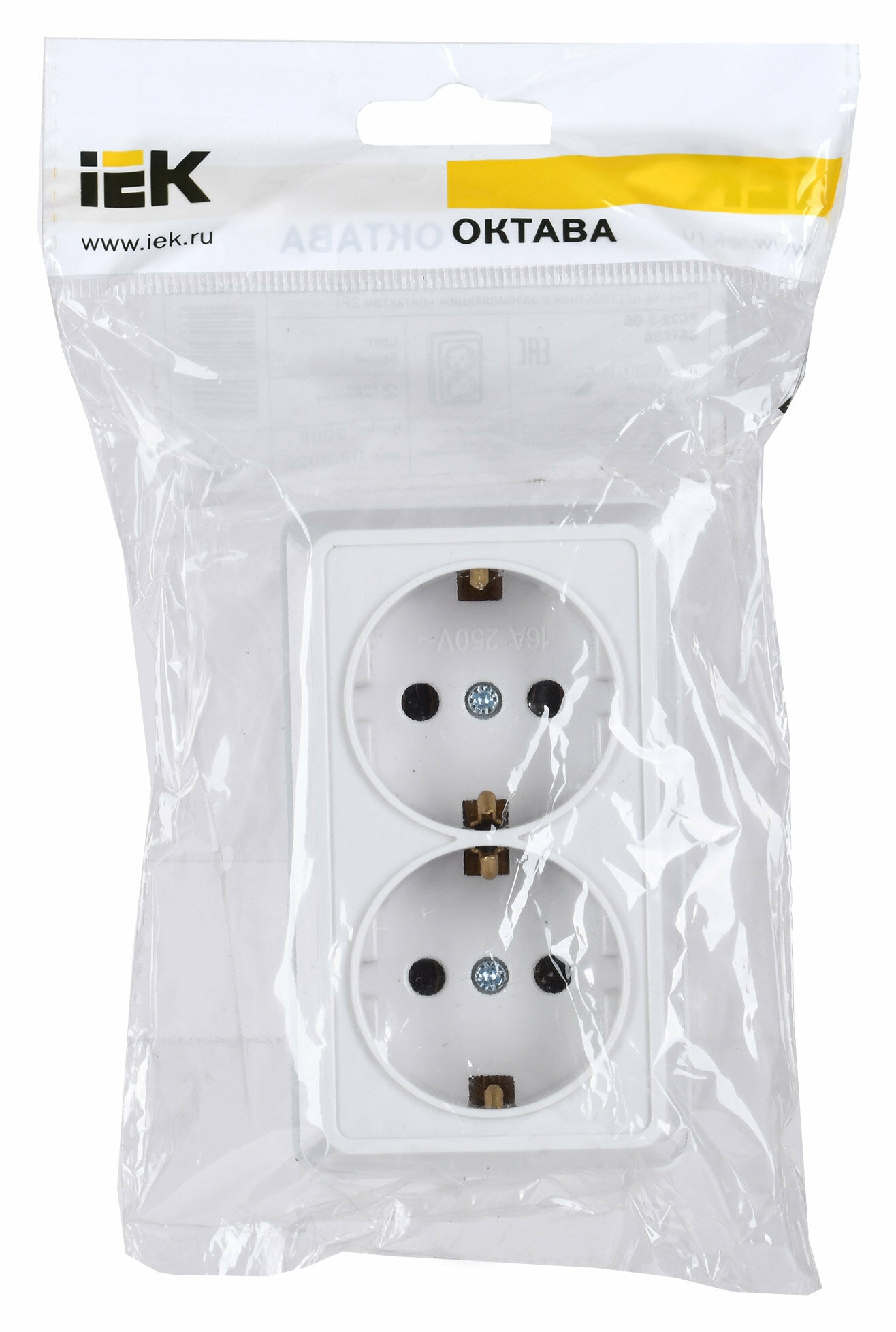 2шт. - Октава Розетка двойная наружная с заземлением белая / IEK; арт. ERO21-K01-16-DC; оригинал / - комплект 2шт
