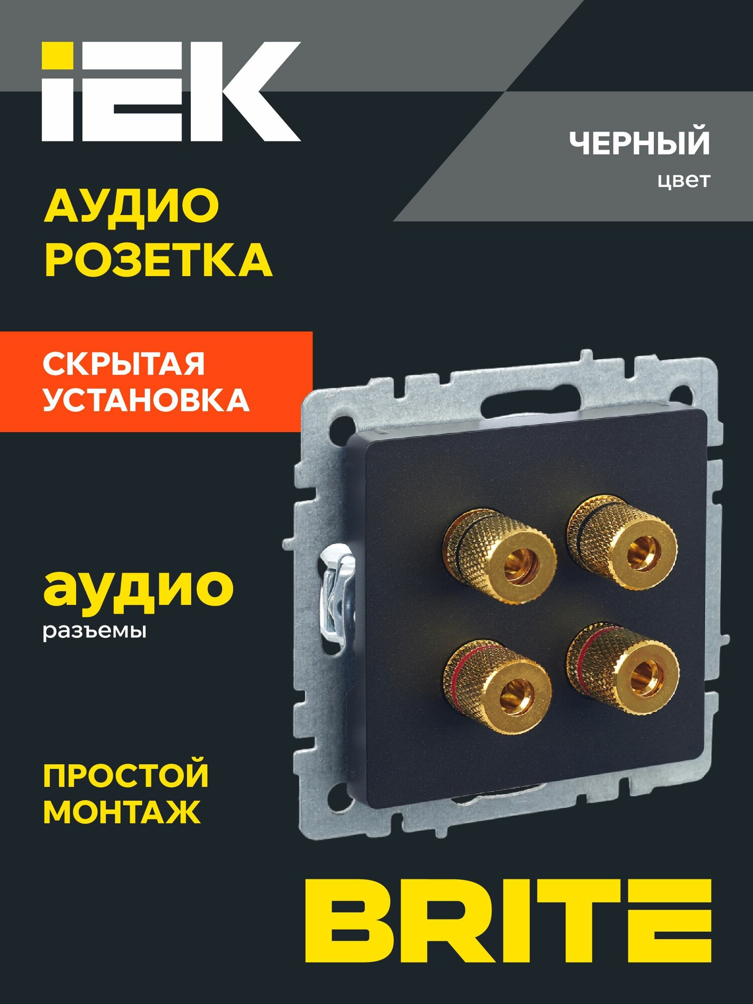 BRITE Аудиорозетка 4-местная РА10-БрС сталь IEK