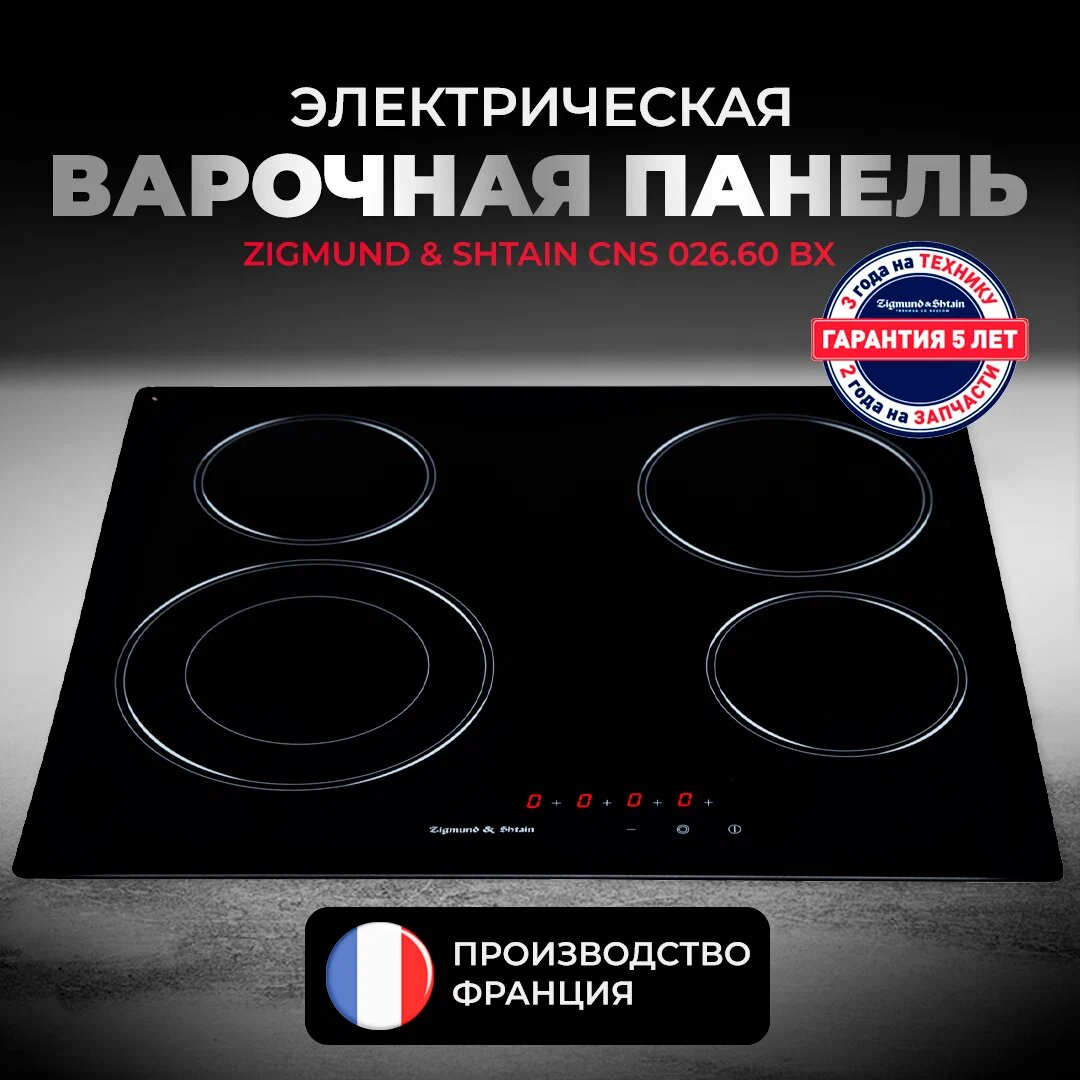 Электрическая варочная панель Zigmund & Shtain CNS 026.60 BX, черный, Произведено во Франции. интересное: