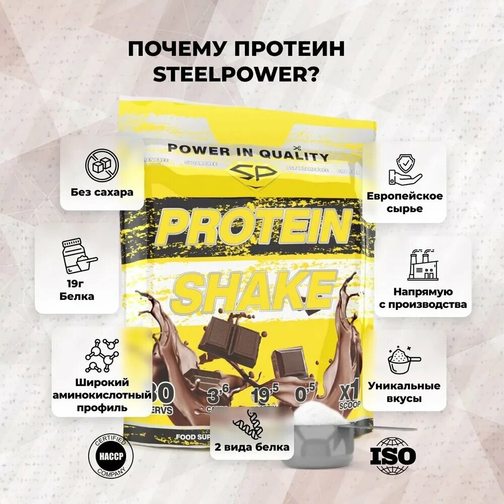 Протеин комплексный, сывороточный и соевый белок STEELPOWER Protein Shake, 900 гр, со вкусом Шоколад, 30 порций, порошок