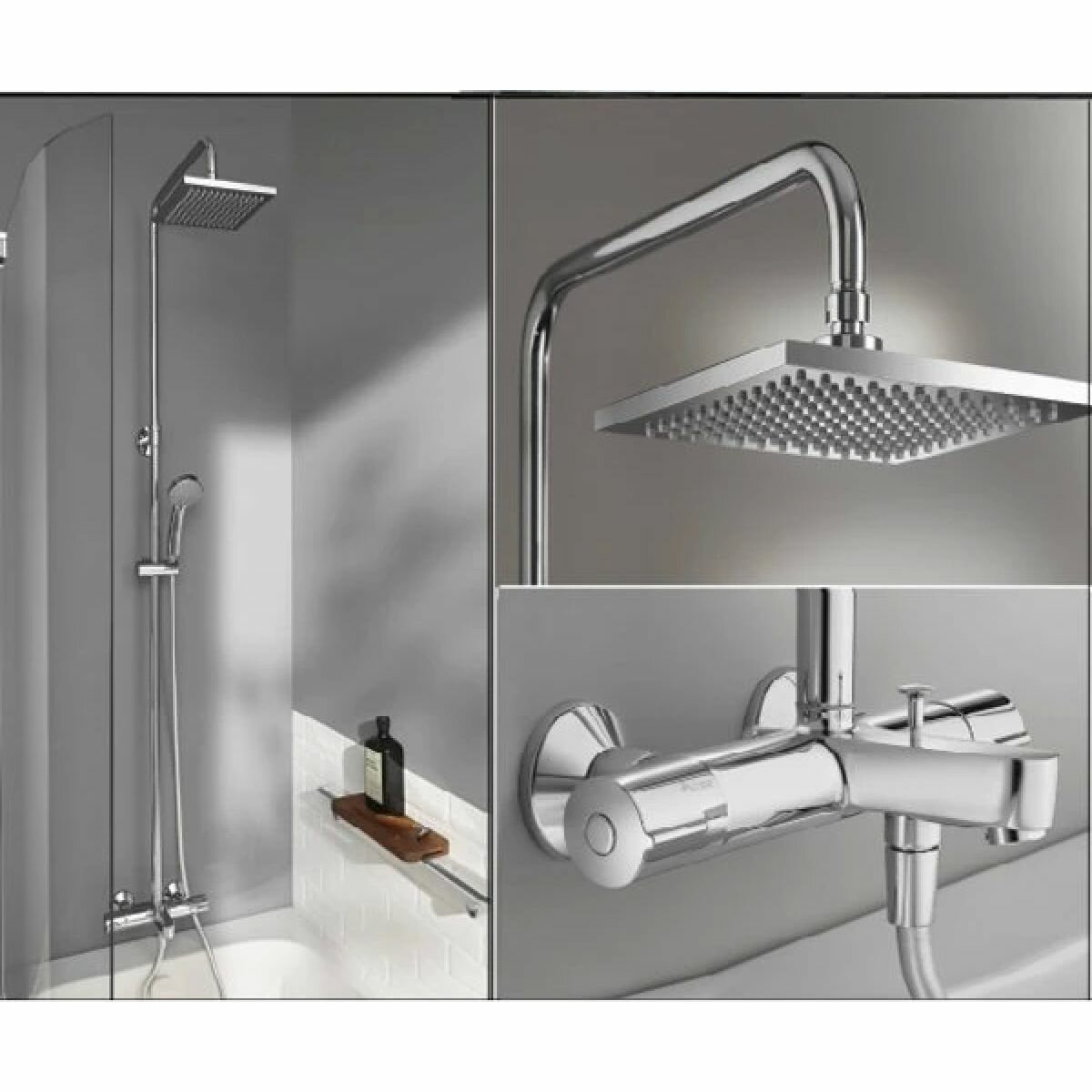 | Дополнительная информация | высота стойки для душа: 1668 мм; диаметр душевой лейки: 90 мм; размеры верхнего душа: 200х200 мм; с ограничением температуры воды |