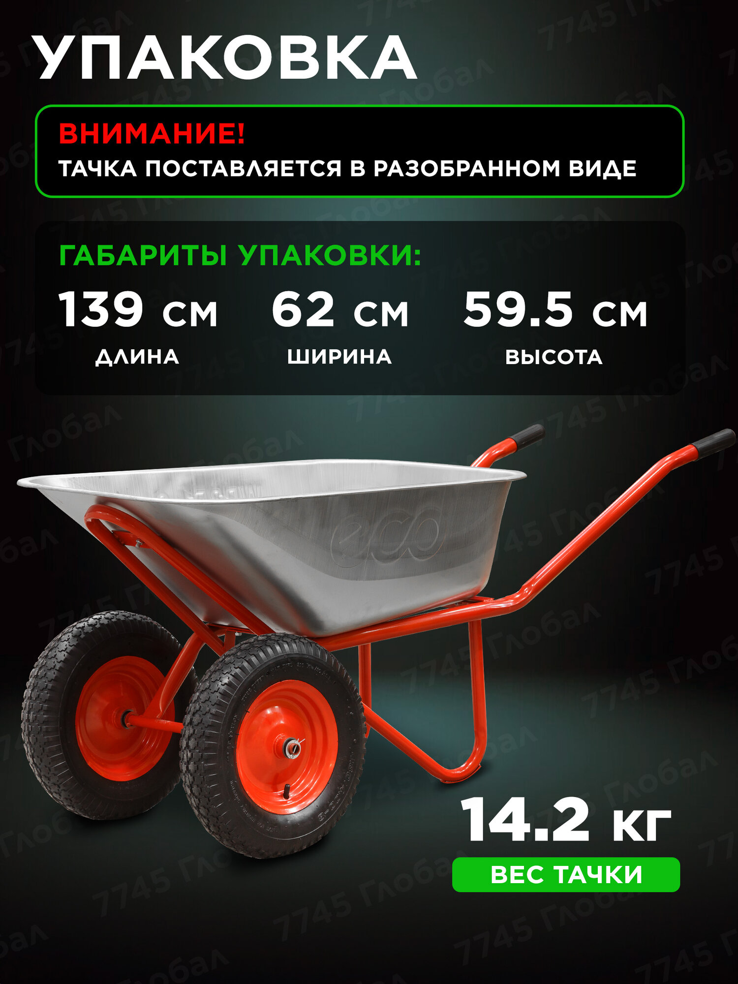СохранитьТачка строительная двухколесная усиленная 130 л 350 кг ECO WB351-2 с пневмоколесами интересное: