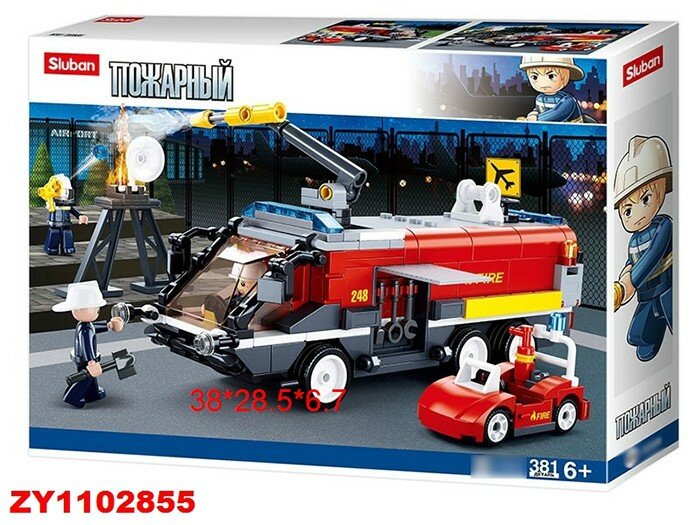 Конструктор пластик Sluban, пожарная машина аэропорта, 381 деталь,3 фигуры