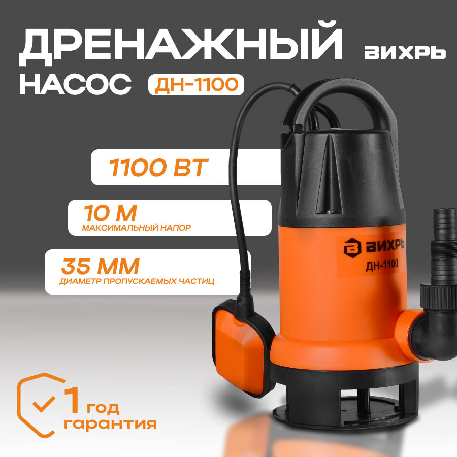 Купить Дренажный насос Вихрь ДН-1100,1100 Вт, макс. напор – 10 м, 258 л/мин, для грязной воды