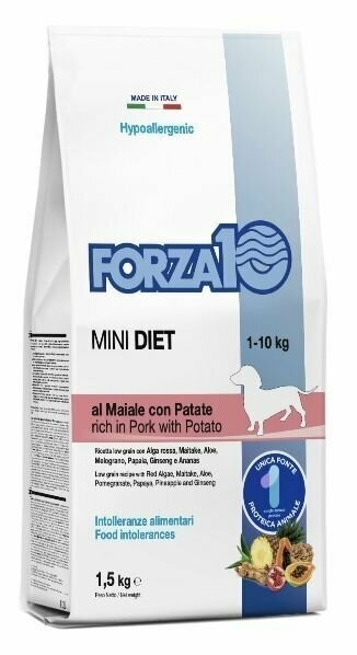 Корм сухой Forza10 "Diet" для взрослых собак мелких пород, Mini Diet Maiale con Patate (свинина, картофель) с микрокапсулами, 1,5 кг