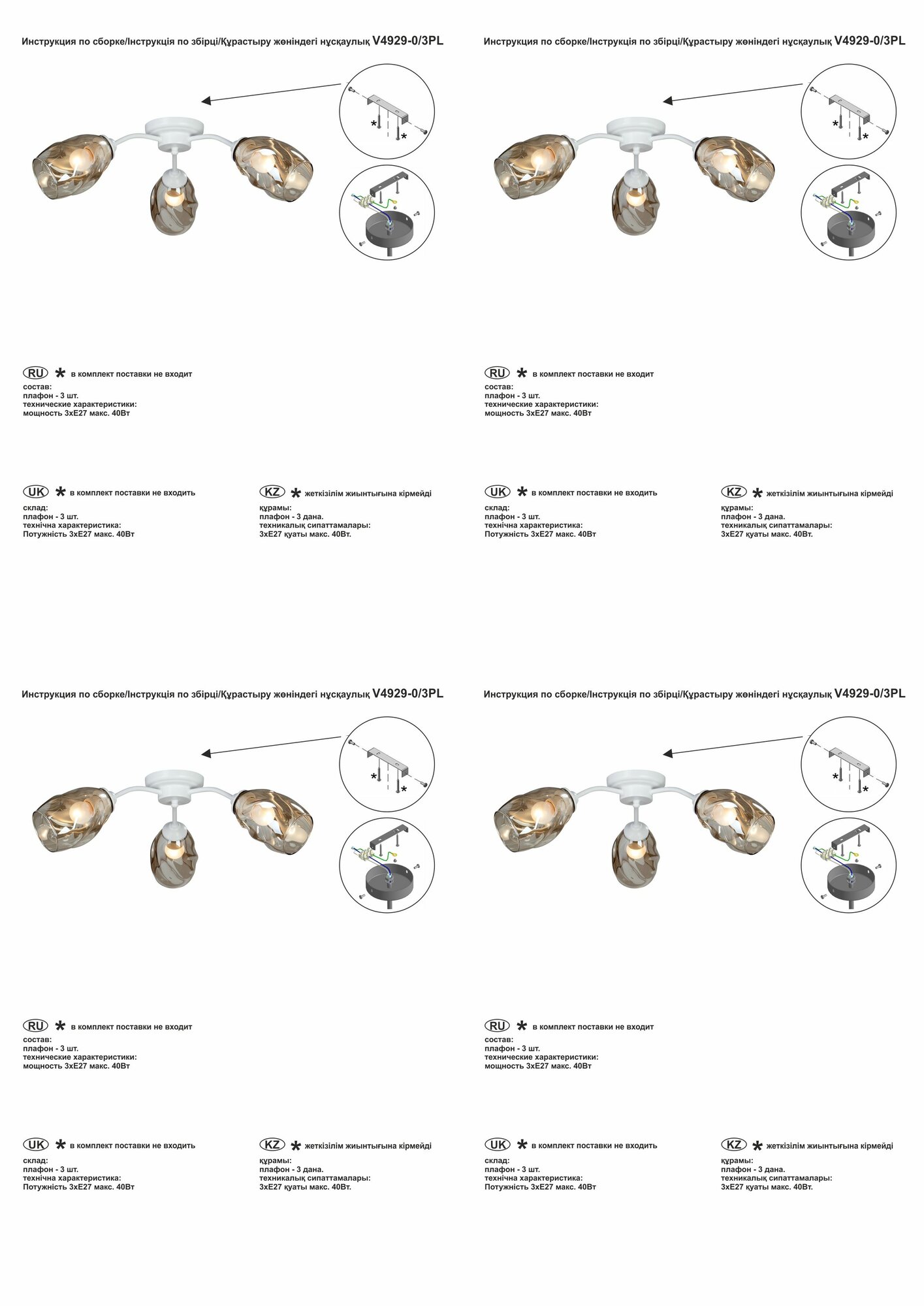 Vitaluce Люстра V4285-1/3PL, 3xE27 макс. 40Вт V4285-1/3PL