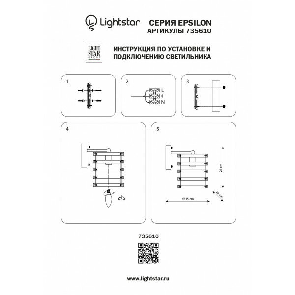 Бра Lightstar EPSILON (SB1509/1) 735610 интересное: