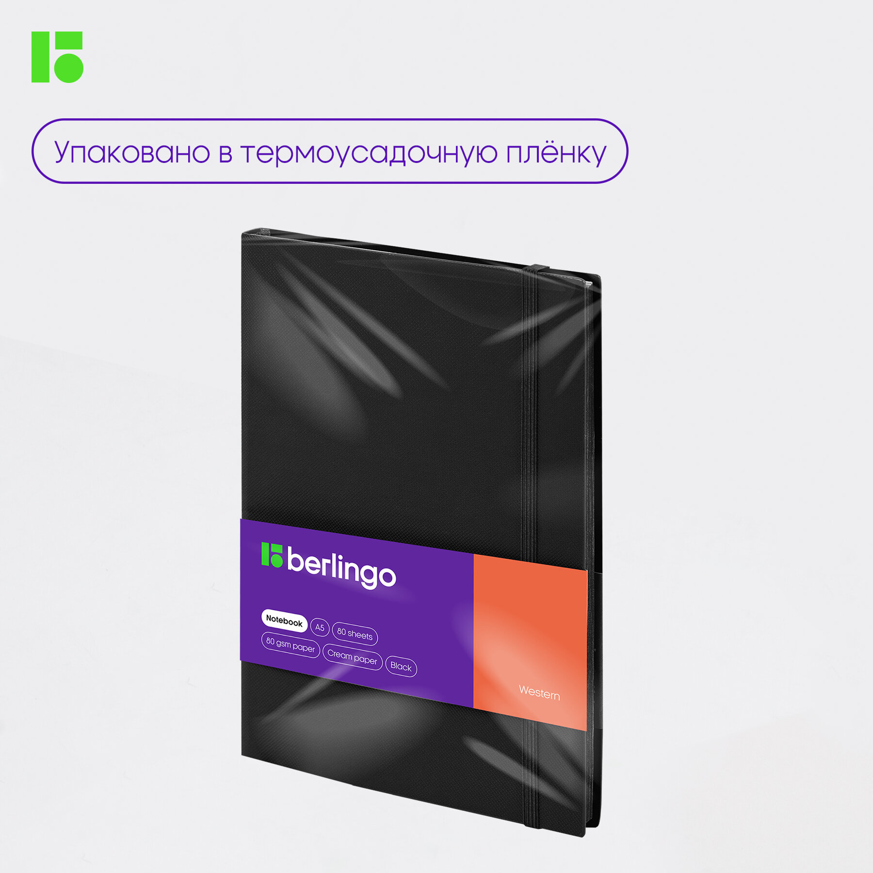 Записная книжка Berlingo А5, 80 листов, кожзам, "Western", черный срез, с резинкой, черный (NB0_85501)