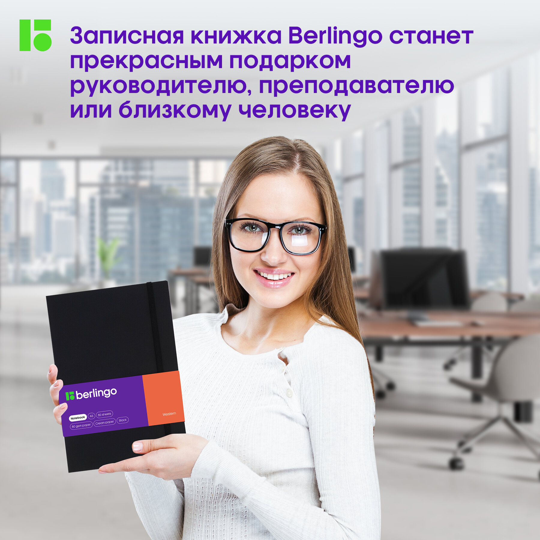 Записная книжка А5 Berlingo "Western", 80 листов, клетка, кожзам, с резинкой, зеленый (NB0_85504)
