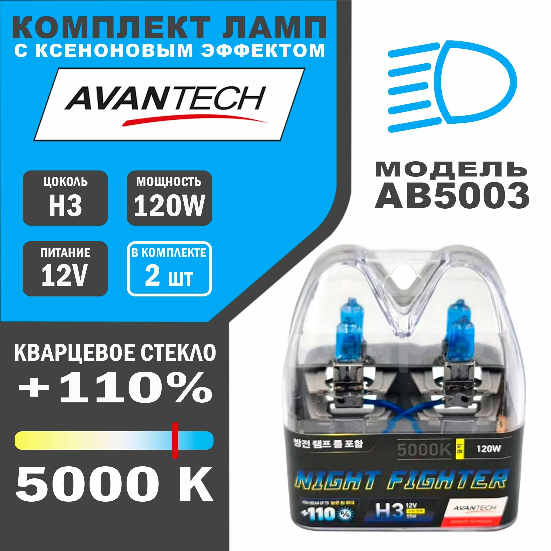 Купить Лампа автомобильная галогеновая высокотемпературная Avantech H3 12V 55W (100W) 5000K, комплект 2 шт. арт. AB5003