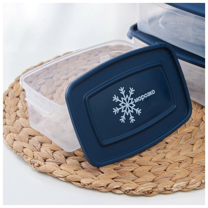 Набор прямоугольных контейнеров для замораживания продуктов «Морозко», 1 л , 3 шт, прозрачные, крышки микс