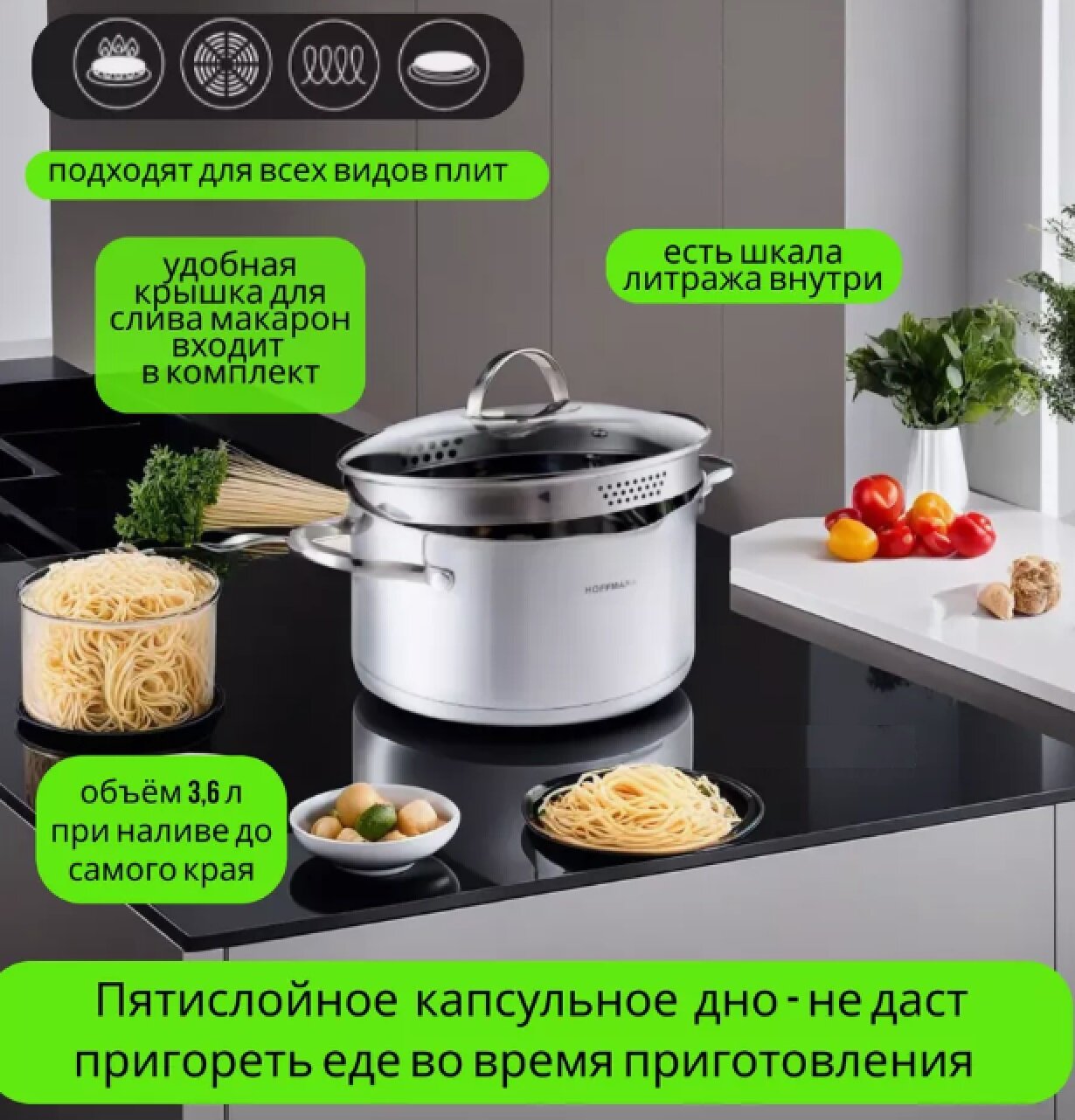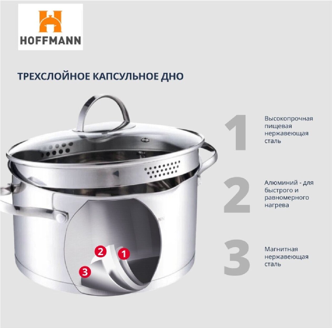 Кастрюля Hoffmann HM 5620, нержавеющая сталь, 3,6 л, капсульное дно, серебристая интересное: