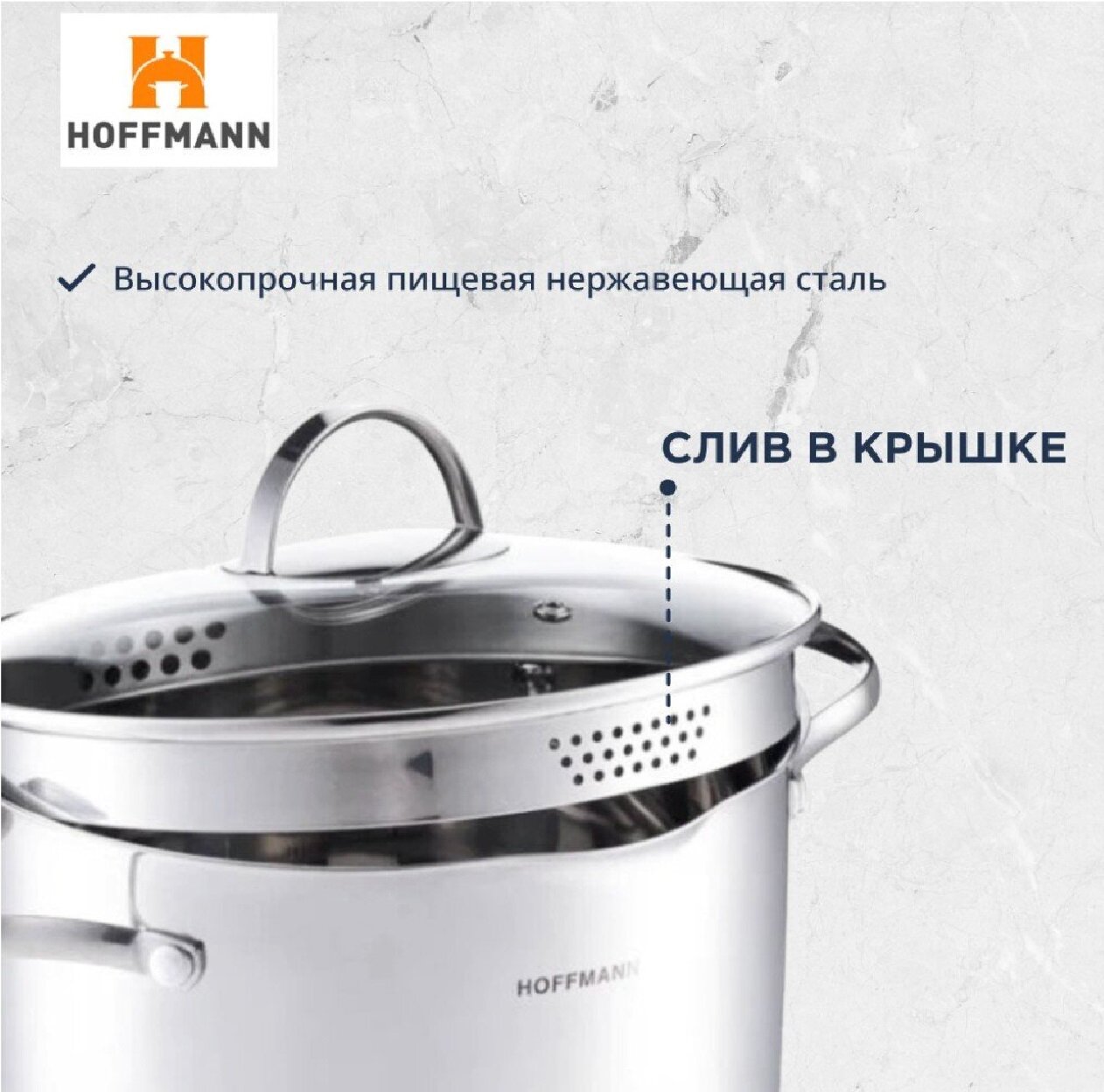 Кастрюля нерж, 3.6 л, с крыш, крыш стекло, со сливом, Hoffmann, НМ 5620, индукц