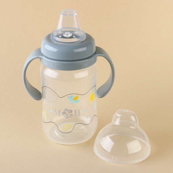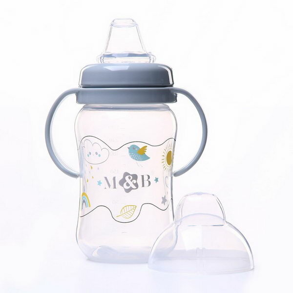 Поильник - непроливайка детский M&B с мягким носиком, от 9 мес, 270 мл, с ручками, серый интересное: