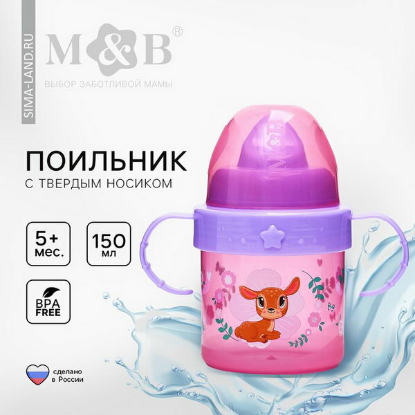 Mum&Baby Аксессуар для кормления, поильник детский с твёрдым носиком "Оленята. Мамы и малыши", с ручками, 150 мл, цвет розовый