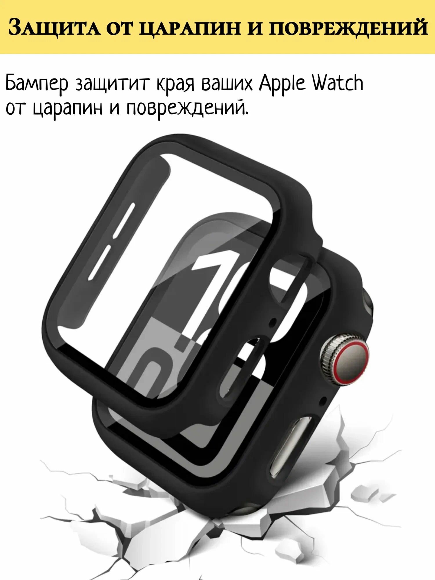 Пластиковый чехол со стеклом для Apple Watch 44 mm, бампер для смарт-часов, защитный кейс на часы Apple Watch 2/3/4/5/6 SE, черный