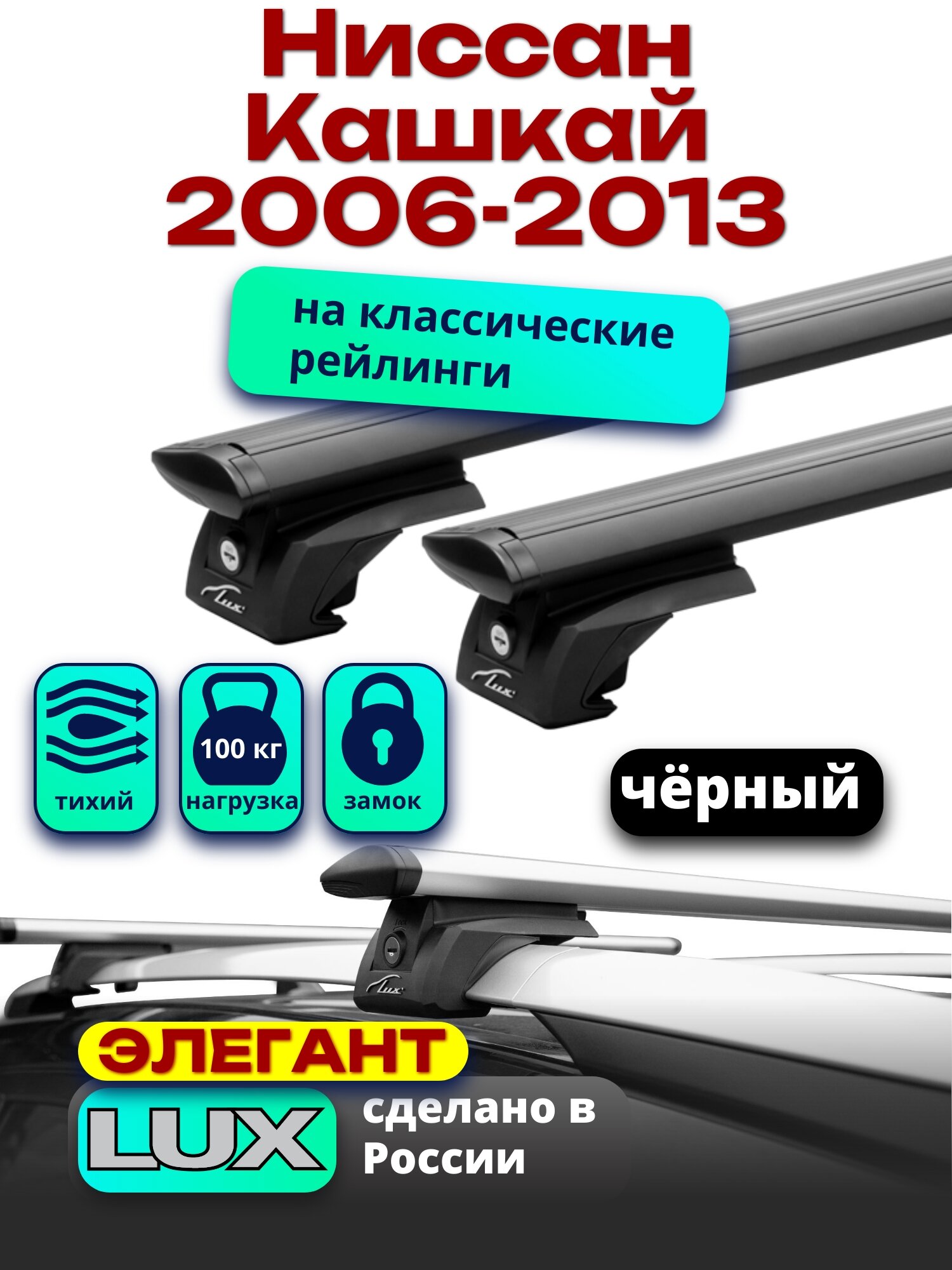 Багажник на крышу Ниссан Кашкай 2006-2013 на рейлинги, черный, дуги аэро-тревел, LUX элегант интересное: