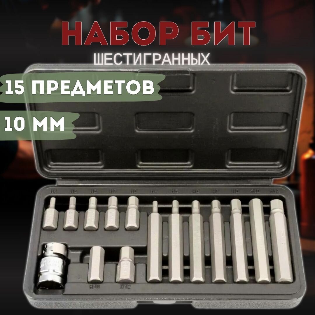Набор бит (вставок) 15 предметов HEX Н4-Н12 автодело 40645