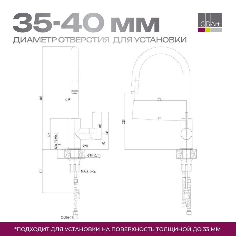 | Тип подводки | гибкая |