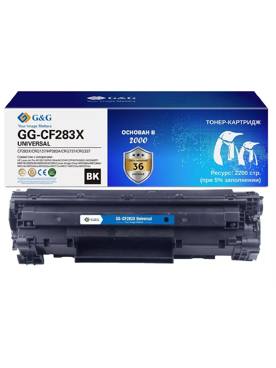 Картридж лазерный G&G GG-CF283X GG-CF283X UNIVERSAL черный (2200стр.) для HP M125/125FM/125A/M127;Canon MF229dw/MF226dn/MF216n;HP M127FW/FN/M201/M225MFP/MFP M225DN/M225DW/M201DW; Canon Image Class MF224dw/MF222dw/MF217w/MF211/MF212w/MF227dw