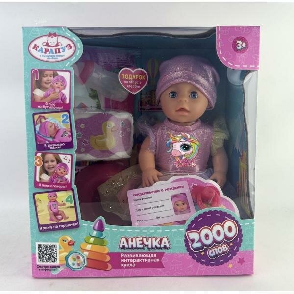Развивающий интерактивный пупс Карапуз барбарики Анечка 40см, щекотка, пьет,писает, моргает, 4аксессуара