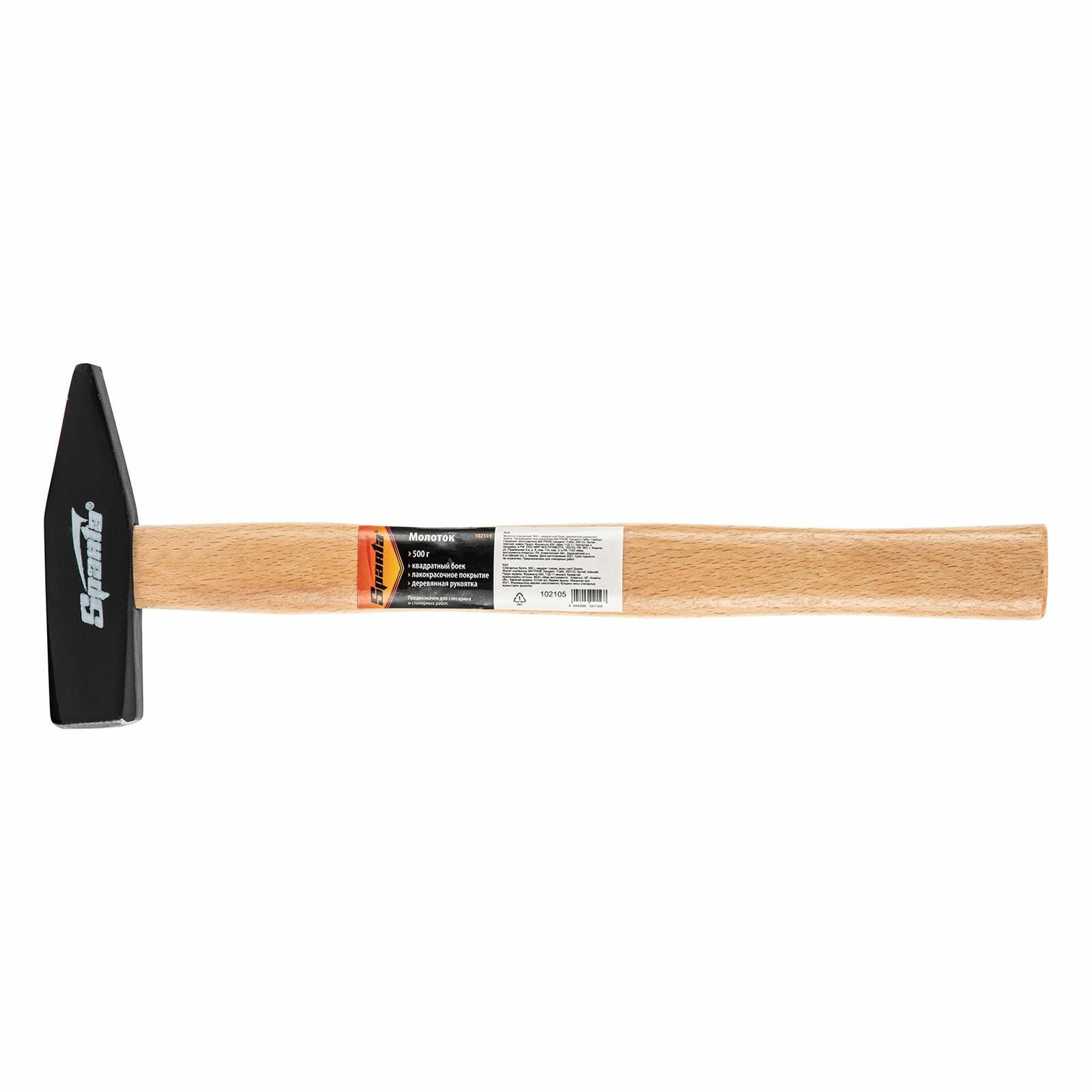 Sparta 102125 Молоток слесарный, 600 г, квадратный боек, деревянная рукоятка .