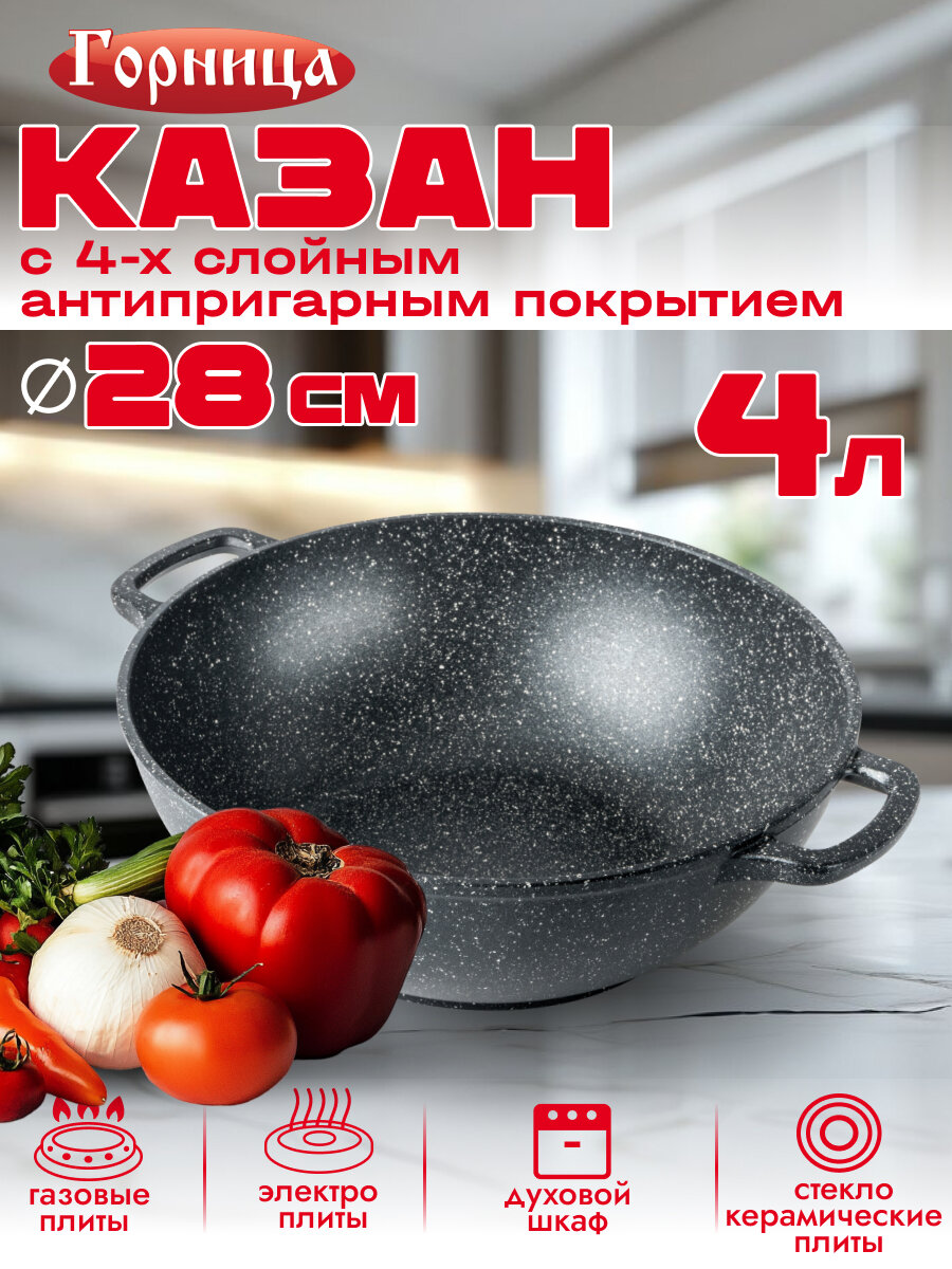Казан d28, с антипригарном покрытии 4л Гранит без крышки интересное: