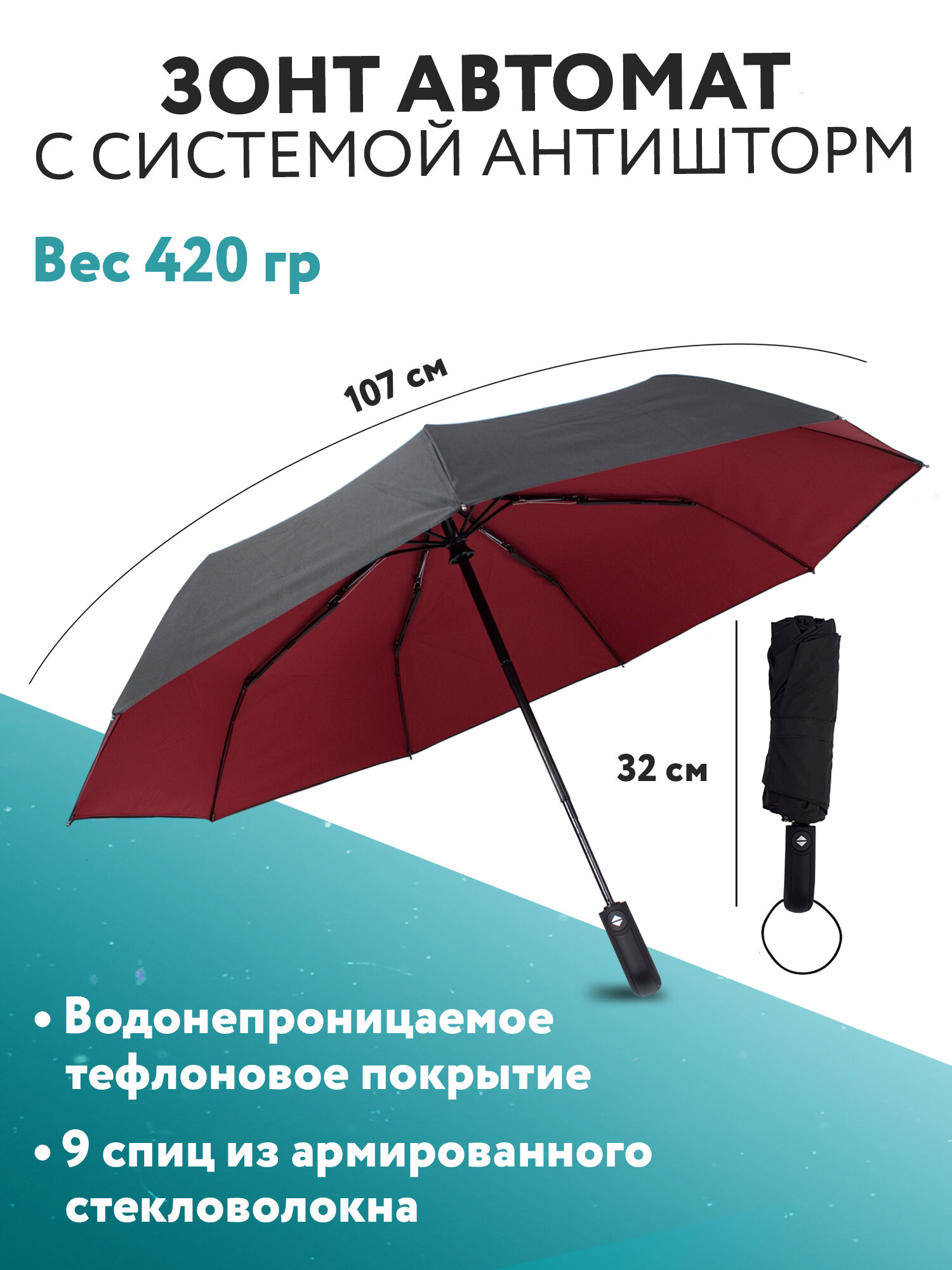 | Особенности модели | мини-зонт, система «антиветер», чехол в комплекте |