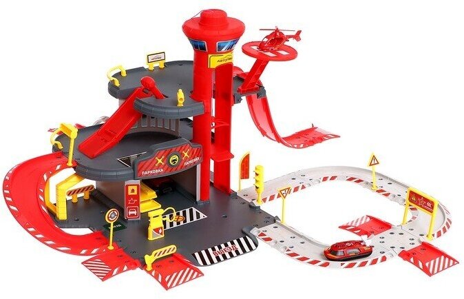 Автоград Парковка "Пожарная станция", с металлическими машинкой и вертолетом Автоград 7573936 .