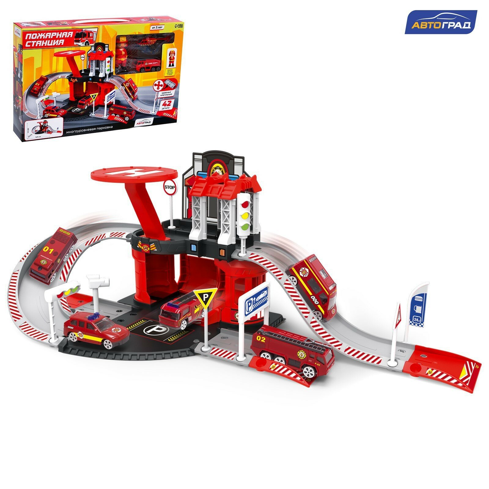 Автоград Парковка «Пожарная станция», с металлическими машинкой и вертолётом