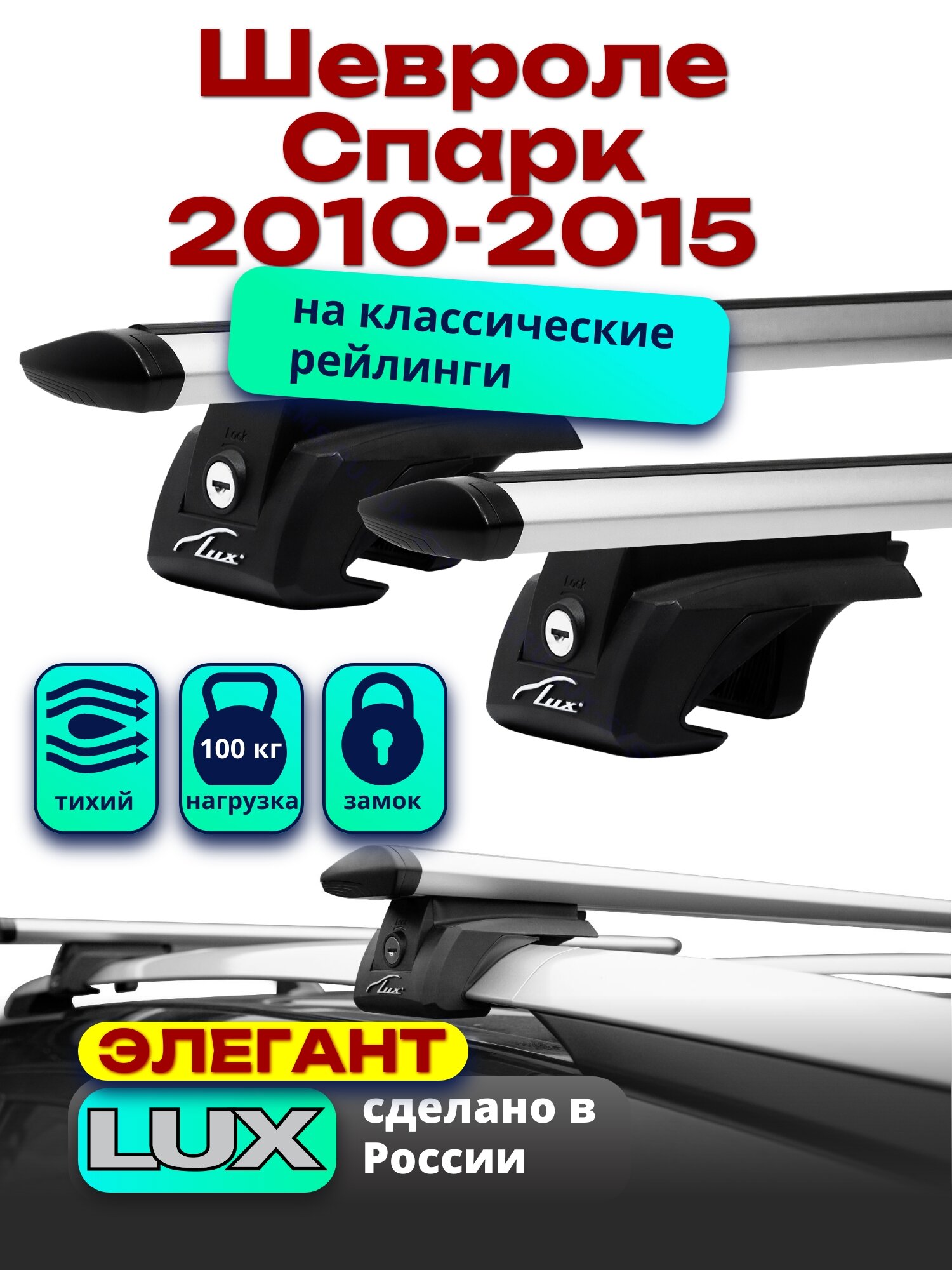 Багажник на крышу LUX элегант с замками, прямоугольные дуги 1,2м на Шевроле Спарк 2010-2015, арт:212116