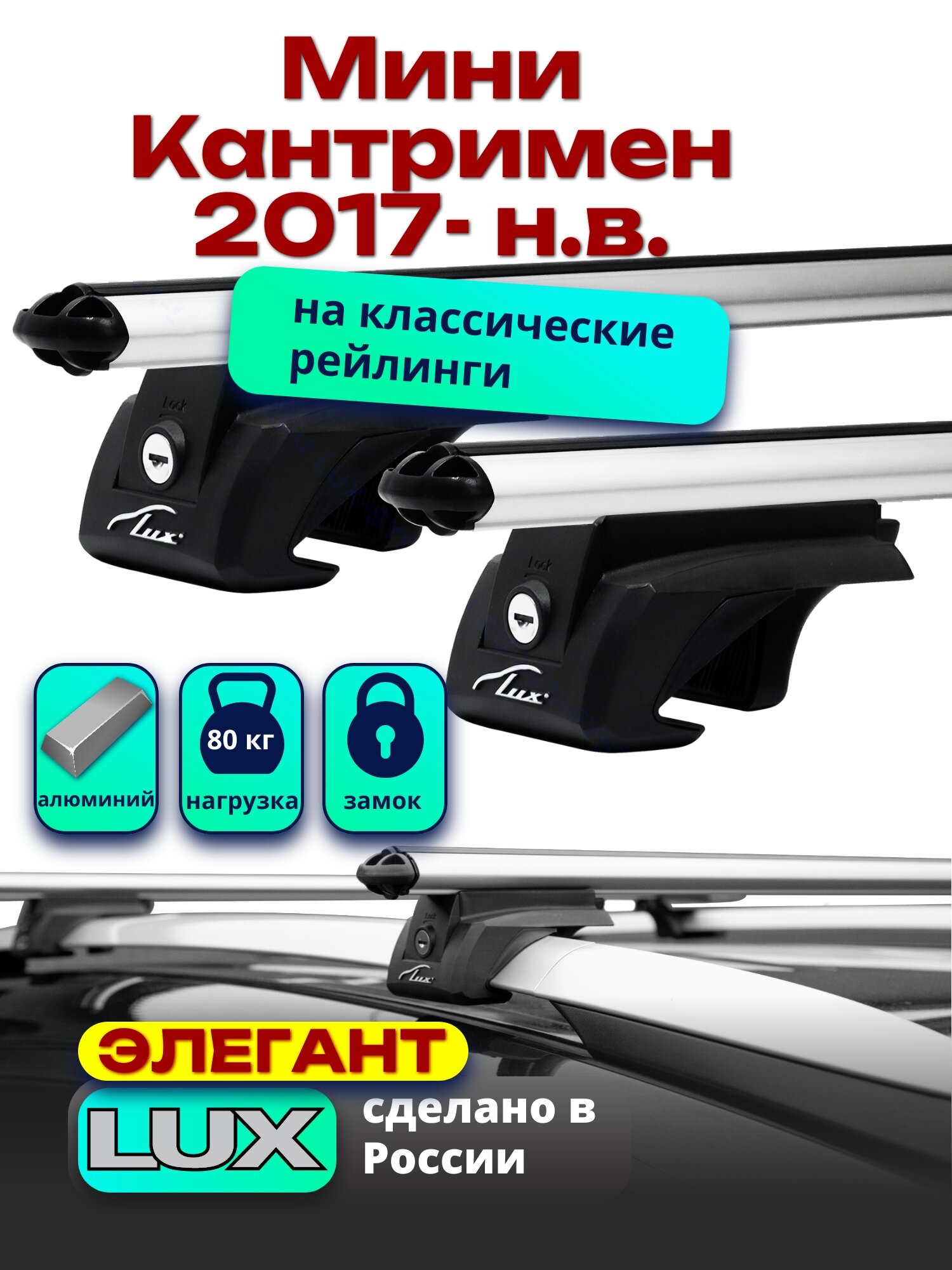 СохранитьБагажник на крышу Мини Кантримен 2017-2024 на рейлинги, дуги аэро-классик, LUX элегант интересное: